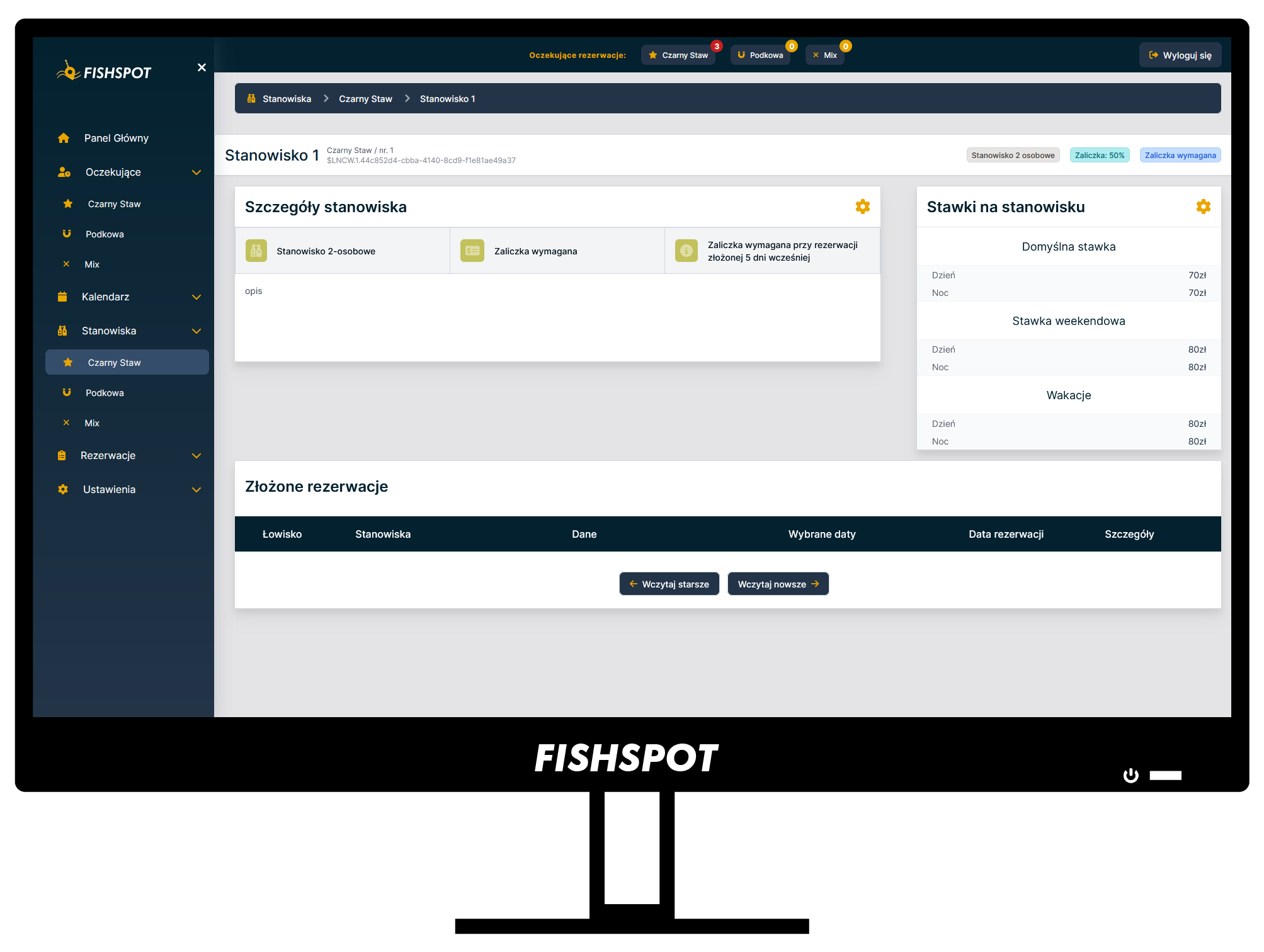 Prosty. Przyjemny. Wygodny. Zapewniamy Ci narzędzie, które pomoże Ci w pełni wykorzystać potencjał Twojego łowiska, umożliwiając łatwą i elastyczną rezerwację dla wędkarzy. Nasz system rezerwacji stanowisk to intuicyjne narzędzie, które sprawia, że organizacja rezerwacji na Twoim łowisku staje się czystą przyjemnością.